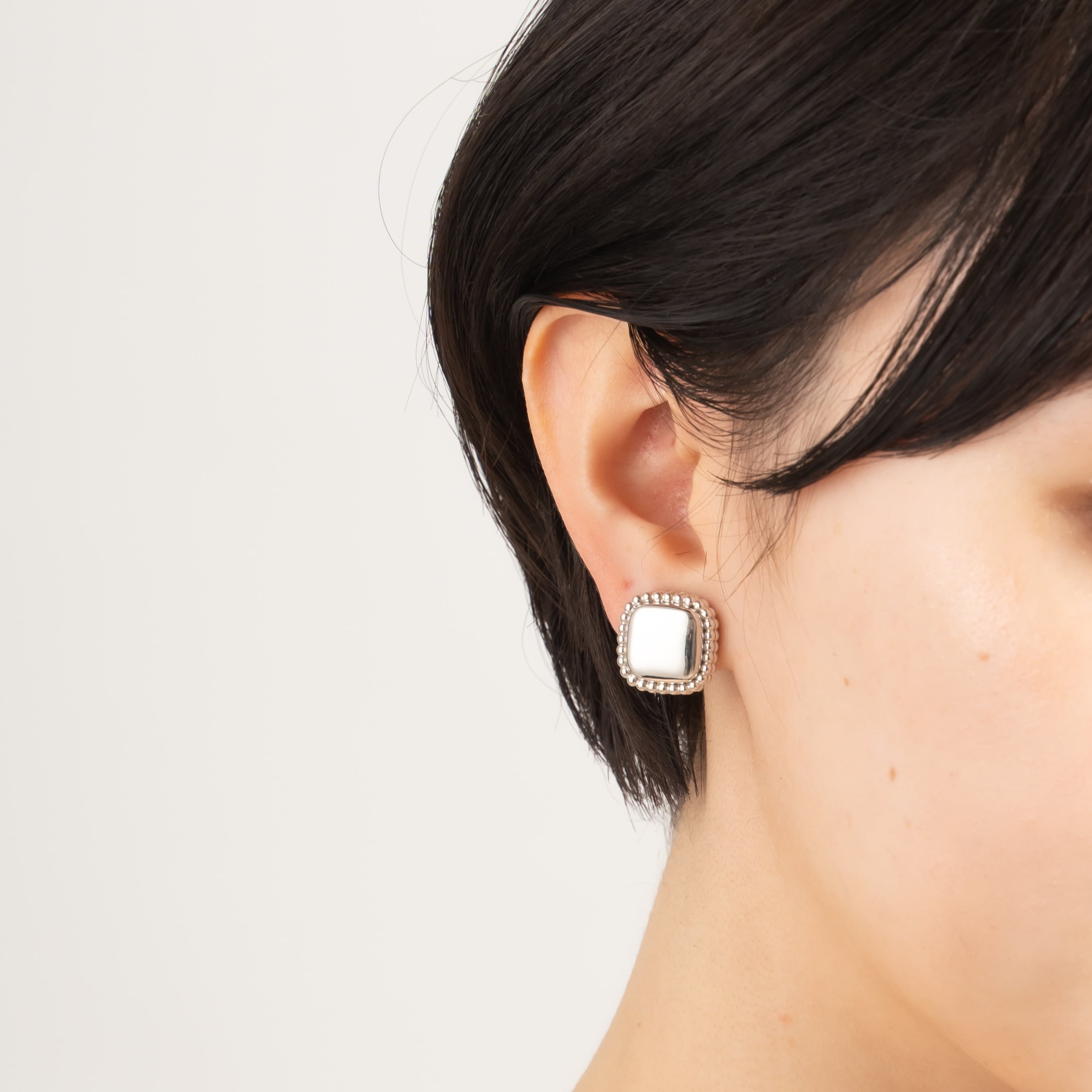 柔らかい印象に仕上げたスクエアフォルムのピアス。
