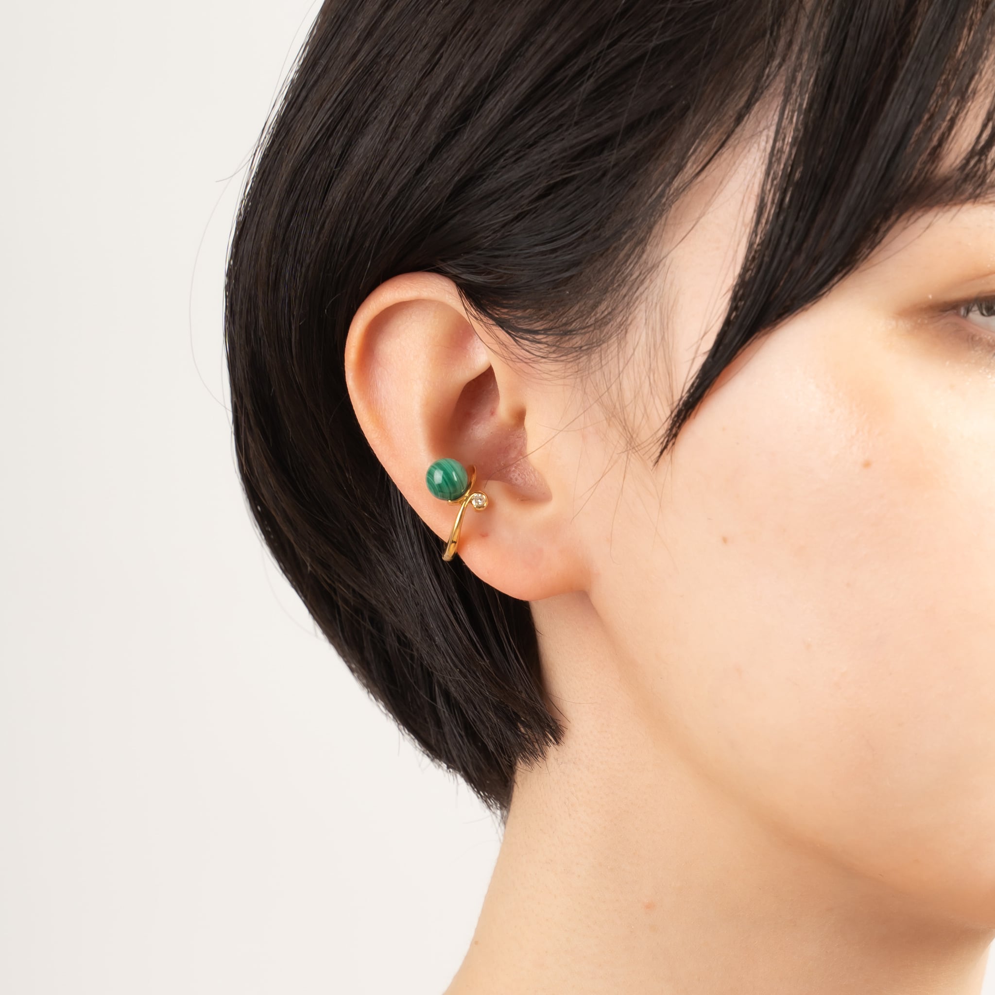 Gold Ear Cuff ゴールド.マラカイト.ダイヤモンド.イヤーカフ GMG3MD